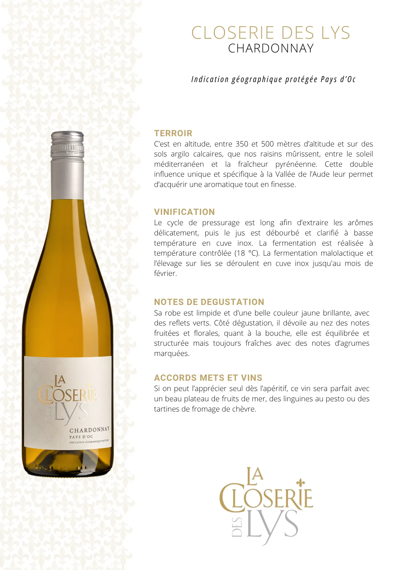 C&T - LA CLOSERIE DES LYS - PAYS DOC - CHARDONNAY - FOND TRANSPARENT
